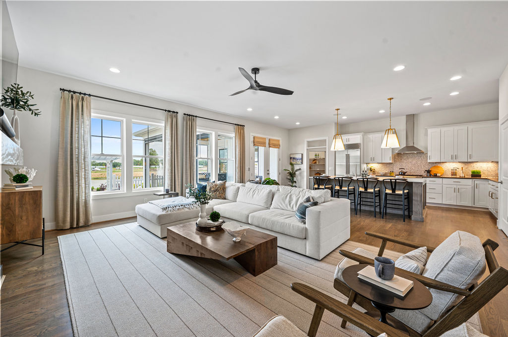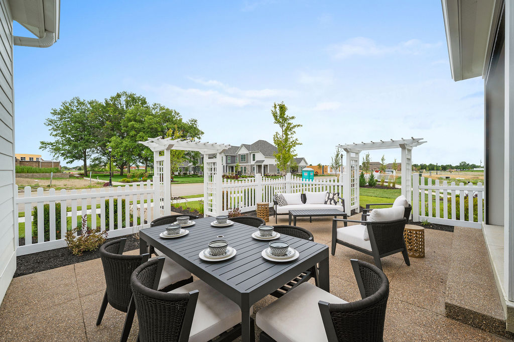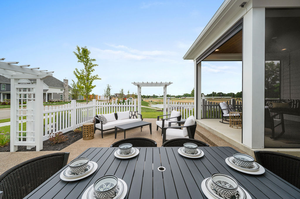 Two bedrooms including first-floor Primary Suite and second bedroom suite plus Study and Dining Room. Select from multiple rear outdoor living spaces.