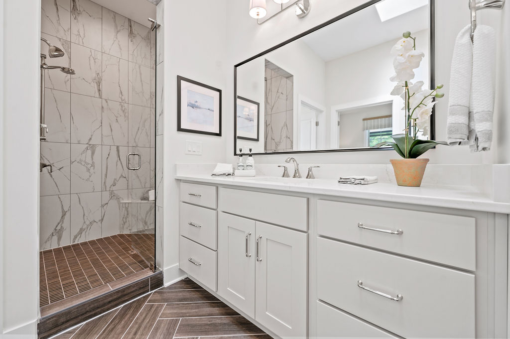 Upstairs you’ll find the Primary Suite with dual vanities, tiled shower with glass enclosure, generous walk-in closet, with convenient laundry room access. A loft area offers flexible living space, while a second bedroom suite is ideal for hosting guests, and a private, dedicated study offers an ideal work from home environment and/or to ensure a highly organized life.