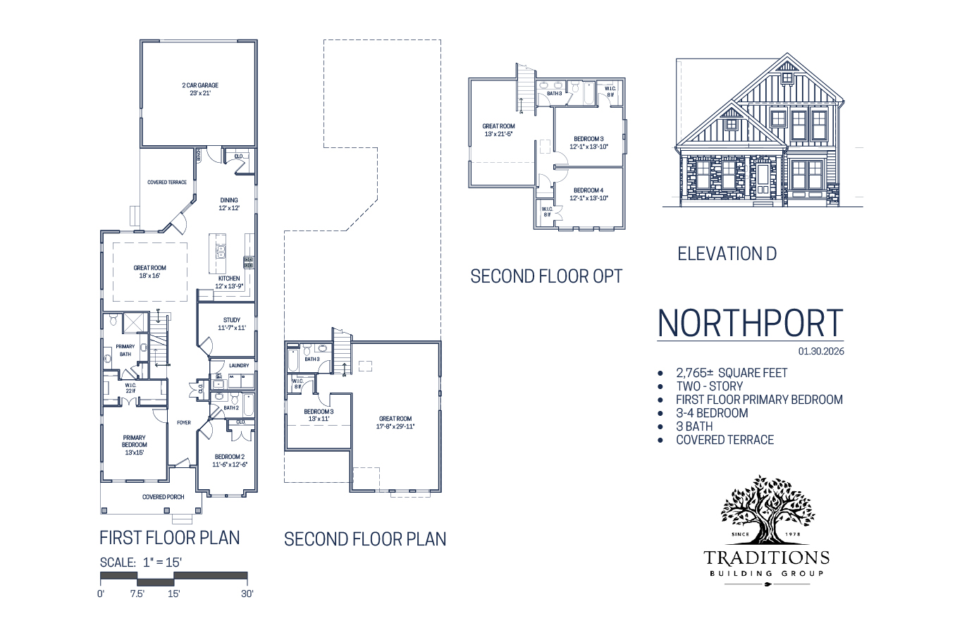 The Northport, a beautifully designed new home by Traditions Building Group now under construction in the Rivers Pointe Estates master planned community, offers 2,745 square feet of thoughtfully crafted living space. With 4 bedrooms and 3 full baths, this home blends comfort, flexibility, and refined style in an easy-living layout designed for today’s lifestyle.